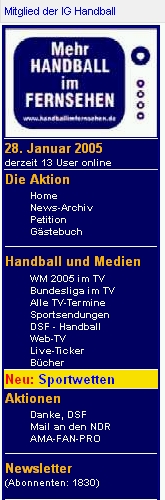 • Wobei, eigentlich sollte man das im Handball mal machen. Dann hätte man einen "Brennpunkt" direkt nach der Tagesschau. Mehr Publicity geht kaum :D