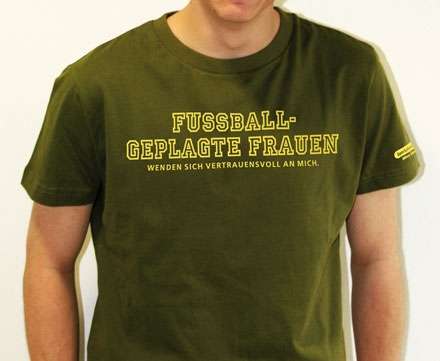 Mann kann es verstehen, dass das Weib nicht viel mit Fussball am Hut hat. Für solche Fälle sind die folgenden Shirts gedacht. Ebenso gibt es Männer, die in dieser Zeit den fussballgeplagten Frauen zur Hand gehen würden. Sie sind ebenfalls an einem Shirt erkennbar :D