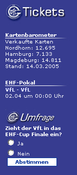 15.03.2005 - EHF-Pokal: VfL prüft Alternative zur Eugen-Haas-Halle