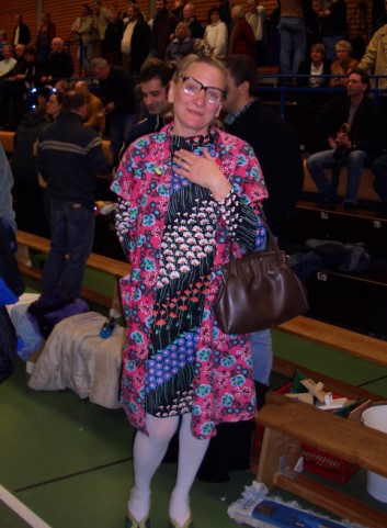 Sie hatte neben dem besagten Europapokalauftritt in Leverkusen auch ein Gastspiel beim Pokalfinale in Riesa (als Oldenburg dabei war). Dabei ist ihr auf dem Feld wohl die Perlenkette kaputtgegangen und die Perlen haben sich wild auf dem Spielfeld verteilt :lol: (Habe ich leider nicht selbst gesehen, weiß ich nur aus Erzählungen)