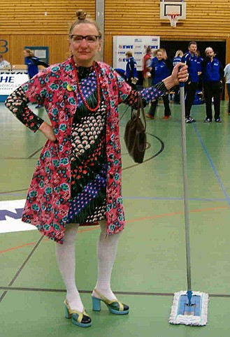 • Tja, wie erklärt man das am besten....Möhre trägt Omas Kittelschürze und macht aus jedem Wischen ein Event... ;) Klasse finde ich, dass sie sogar als Werbepartnerin für einen der Oldenburger Sponsoren im Hallenheft auftaucht :)