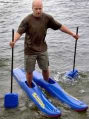 Feuchtfröhlicher Freizeitspaß mit SchwimmschuhenSchwerin (dpa) - Wenn Frank-Uwe Groth aus Gneven bei Schwerin über das Wasser läuft, hat das nichts mit höheren Mächten oder Zaubertricks zu tun: Der 43 Jahre alte gelernte Bootsbauer probiert vielmehr seine selbst entwickelten Schwimmschuhe aus.