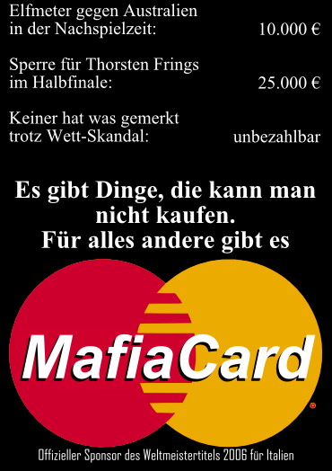 Die "Mafia-Card" ist lustig aber das Lied finde ich völliger Blödsinn und einfach nur daneben! Dieses Anti-Italien-Gehabe geht mir tierisch auf den Sack!