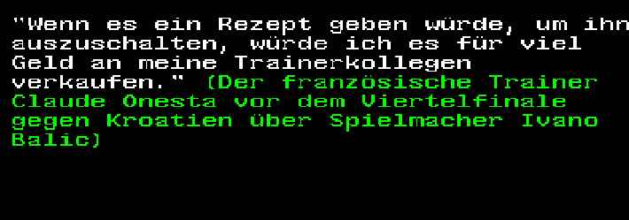 • Wir haben aus dunklen Kanälen erfahren, welchen Zaubertrank Heiner Brand immer Henning Fritz vort den Spielen verabreicht. Den hat dann Thierry Omeyer auch bekommen(Claude Onesta zur Leistunfssteigerung der französichen Mannschaft, speziell von Omeyer, im Spiel gegen Kroatien)