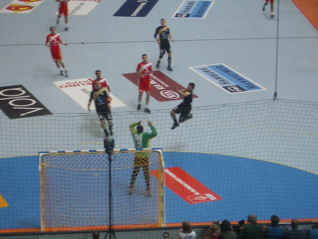 Mimi beim Spiel gegen Tunesien (25.1. Dortmund). Sprung-Wurf und sein erstes Tor in diesem Spiel
