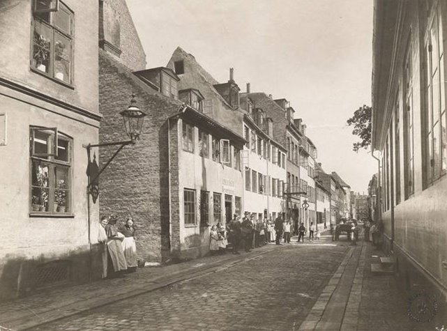 Das Bild ist von 1899, die Straße hat sich nur wenig verändert. Stammt aus einem Vergleichsfoto "Früher/heute". Die Ähnlichkeit ist verblüffend und die Straße wäre mit diesem Foto erkennbar, wenn man davor steht.
