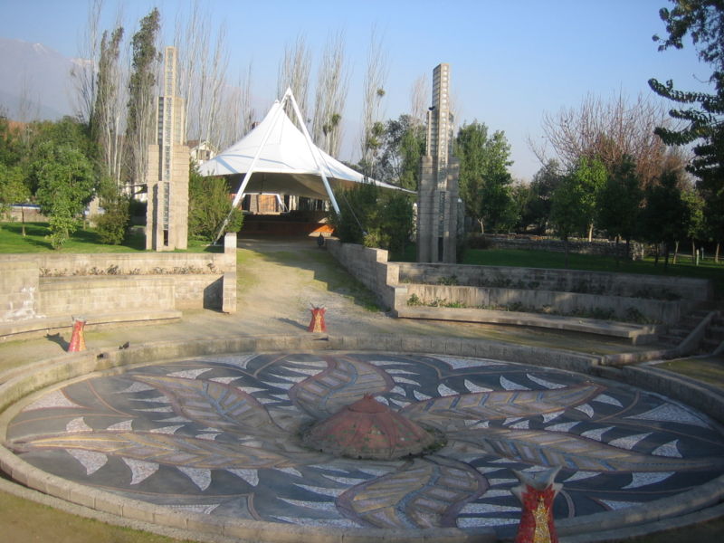 Das ist der Park des Friedens in Santiago de Chile. An diesem Ort stand einst die Villa Grimaldi in der von 1975 bis 1988 Oppositionelle der Pinochet-Diktatur gefoltert wurden. Mindestens 4.500 Menschen wurden dort gefoltert und 226 davon umgebracht.