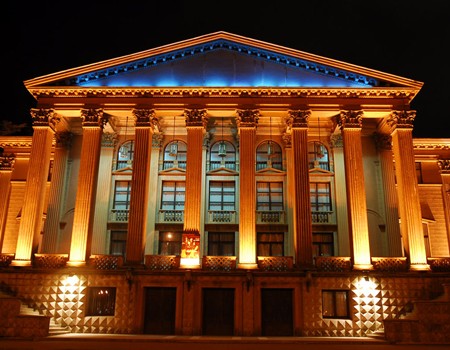 Es ist das Ilya Chavchavadze State Drama Theatre in Batumi, einer Hafenstadt am Schwarzen Meer.