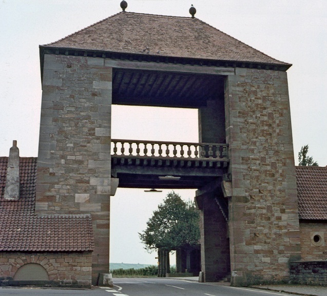 Das Deutsche Weintor in der pfälzischen Weinbaugemeinde Schweigen-Rechtenbach (Rheinland-Pfalz) markiert seit 1936 den südlichen Beginn der Deutschen Weinstraße.