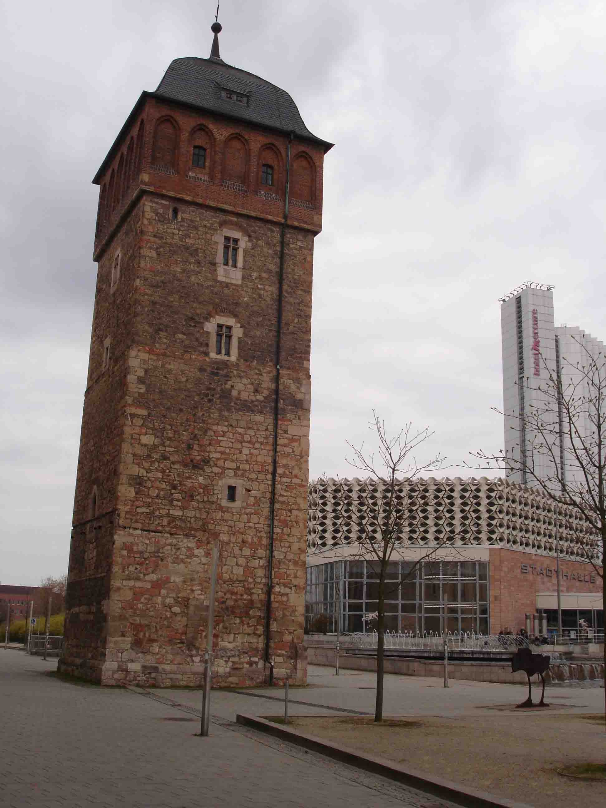 Das ist der Rote Turm, das Wahrzeichen von Karl-Marx-Stadt aka Chemnitz.