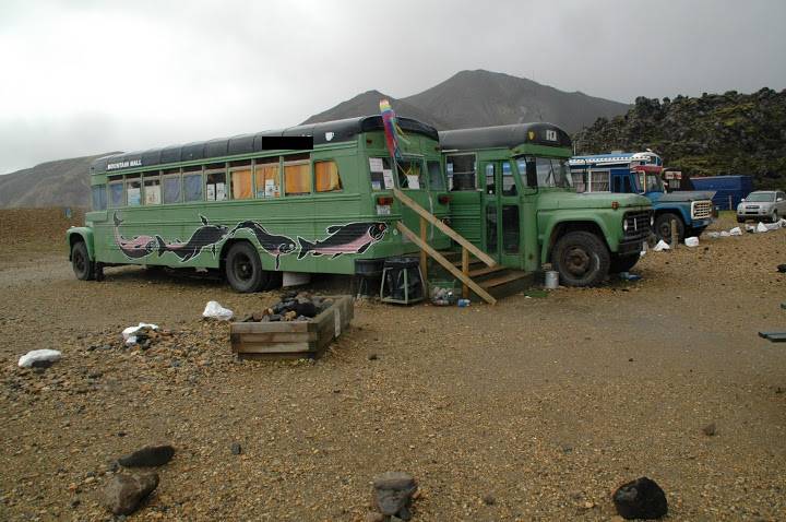 Nina and Smaris (jetzt Halli und Gunnas) Bus Shop & Info "Fjallafang" bei Landmannalaugar -
