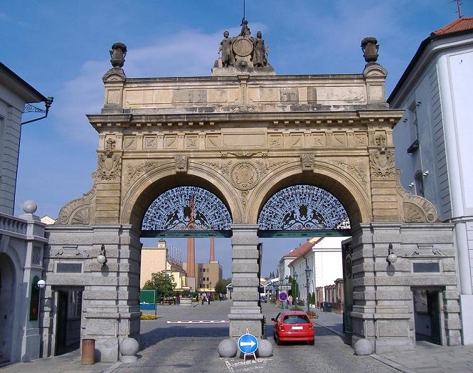 • Eingangstor zur Plzenské Pivovar, der Brauerei aus der Geburtsstadt des Pils in Plzen, CZ.