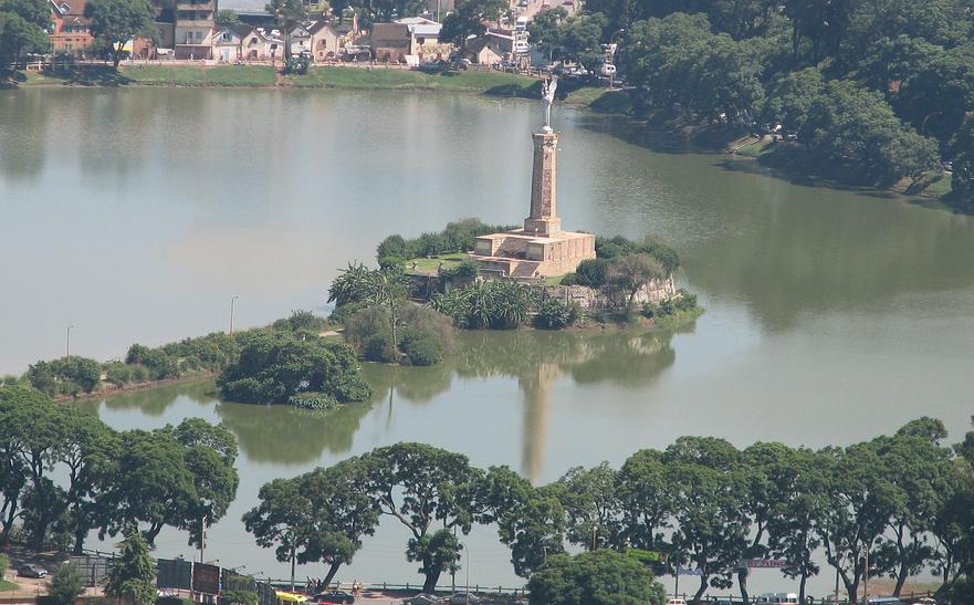 Es ist das Denkmal "Schwarzer Engel" für die im 1. Weltkrieg gefallenen französischen Soldaten. Die Statute steht auf einem erreichteten Podest im See Anosy in der madagaskarischen Hauptstadt Antananarivo. Der See liegt mitten in der Stadt.