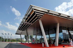 Das Bild zeigt die Eingangshalle der Messe Offenburg-Ortenau (genauer Oberrheinhalle).