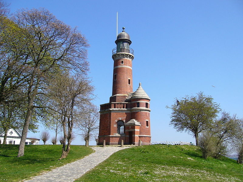 In der Kieler Förde befindet sich die Zufahrt zum 1895 eröffneten Kaiser-Wilhelm-Kanal, der heute als Nord-Ostsee-Kanal eine bedeutende Abkürzung für die Seefahrt darstellt, die sich auf diese Weise den Umweg über Kattegat und Skagerrak sparen kann. Im gleichen Jahr wurden auch zwei Molenfeuer eingeweiht, von denen das nördliche auch gleichzeitig ein Denkmal wurde. In einer kleinen Gedächtnishalle unterhalb des Turmschaftes feierte sich der Kaiser selbst. Über dem Eingang ist symbolisch die Vereinigung von Nord- und Ostsee als Relief dargestellt. Das Molenfeuer steht seit 1988 unter Denkmalschutz.