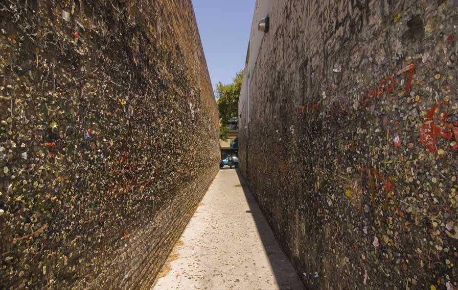 eine bestimmte Person ist bekannt für diese Gasse bzw. diese Gebäude?Schmierereien an den Wänden sind so gewollt?