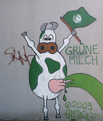 "Grüne Milch" bewegt die Gemüter"Coole Aktion!" findet auch Katrin Ritter (...) Das soll aber nicht bedeuten", so betonen Ritter und auch von Behren, "dass wir die Aktionen der Sprayer gut heißen wollen".