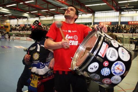 Hängt aber wohl mit der Fan-Freundschaft zwischen Nürnberg und Schalke zusammen. Eine Fan-Freundschaft zwischen TuS und HSG ist mir (noch) nicht bekannt.