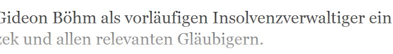 Amtsgericht setzt Gideon Böhm als vorläufigen Insolvenzverwaltiger ein.