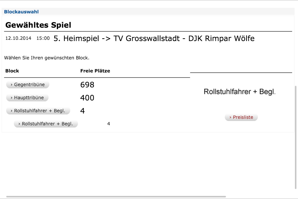 Stand 10.10.2014 10:26Gegentribüne 772 freie Plätze