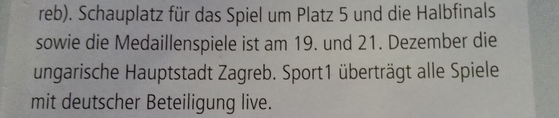 Btw. im Programmheft was man heute in Krefeld bekommen hat, steht dass die EM-Finale in der ungarischen Haupstadt, Zagreb stattfinden wird. OK, ich weiss dass Ungarn + Koratien auch zusammen kleiner sind als NRW, aber, bitte schön...
