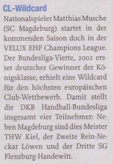 Hier SC Magdeburg erh鋖t eine von zwei HBL-Wildcards und startet in der Champions League sagt der SCM aber eigentlich ganz klar, dass die WC sicher ist.
