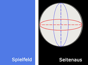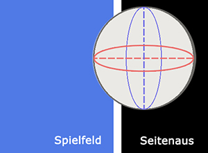 Der Ball ist dann im aus, wenn sich (bei senkrechter Draufsicht) kein Teil des Balls über oder im Feld befindet.