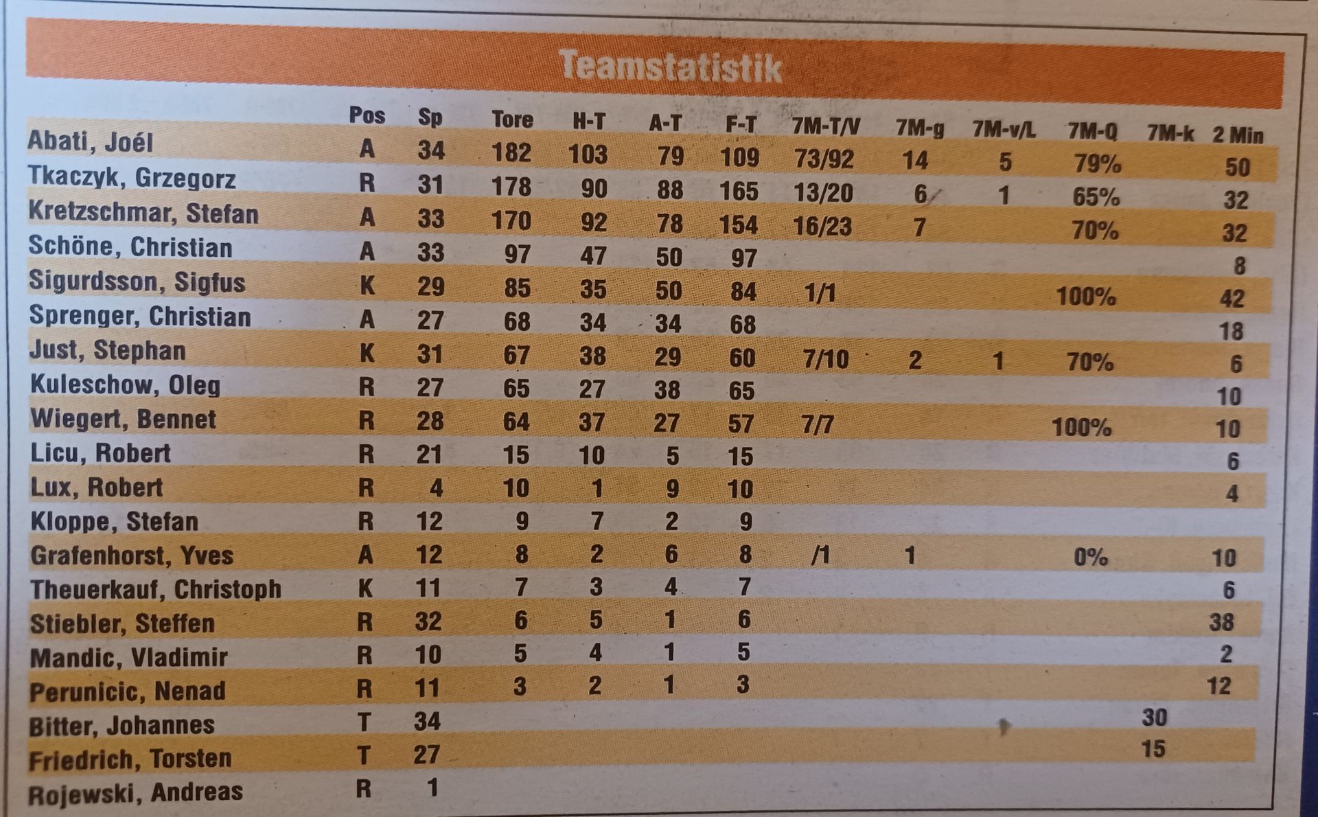 2002/2003 gibt es unterschiedliche Angaben in Handballwoche und Handballmagazin. Da muss ich dann auch mal die einzelnen Spiele prüfen. Fürs Erste bleibe ich mal bei den Zahlen der Handballwoche. Wenn ich mir das angesehen habe, gebe ich hier mal die Rückmeldung.