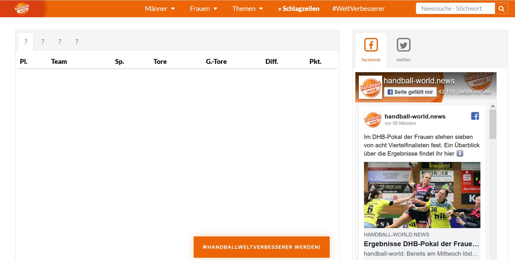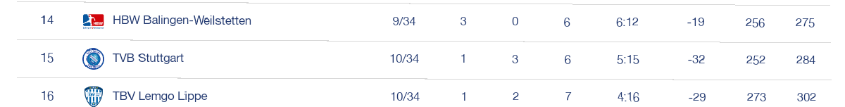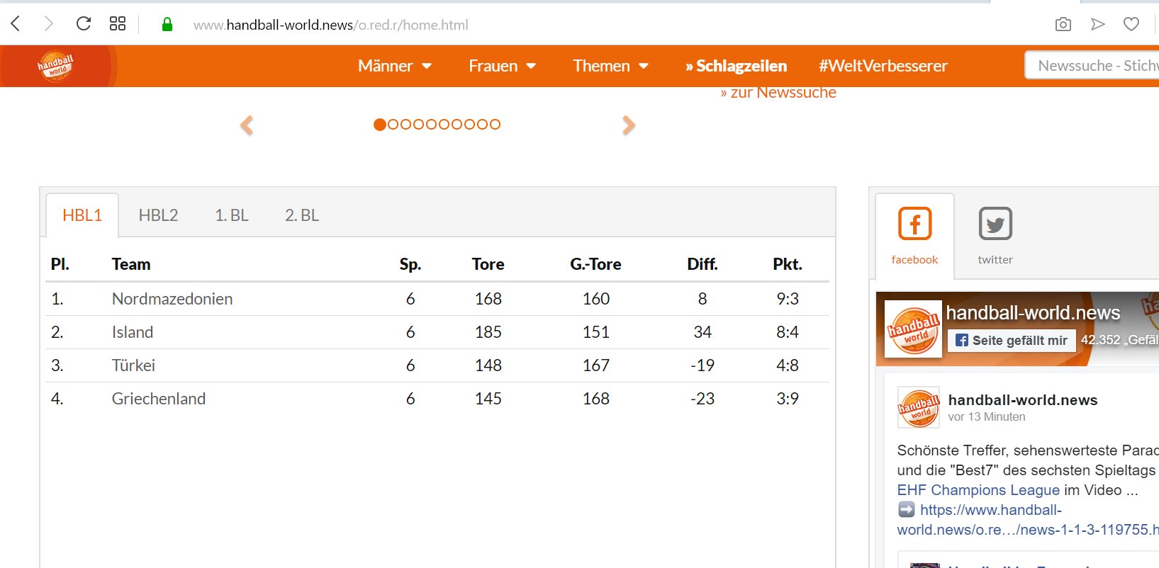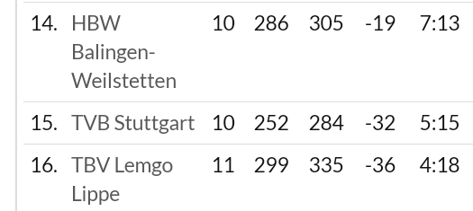 Au fein, dann hat sich.mein Java-Script wieder von allein aktiviert, denn jetzt ist die Tabelle von Handball-World wieder plausibel.