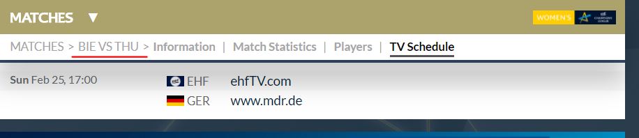 In der offiziellen Webseite der Champions League, ehfcl.com, ist immer noch zu lesen, dass das Spiel vom MDR übertragen wurde.