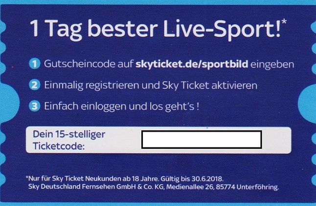 Ich habe hier noch einen ungenutzten Gutscheincode für ein Tagesticket Sky Sport rumfliegen, der mal vor Monaten der SportBILD beilag und den ich nicht benötige.