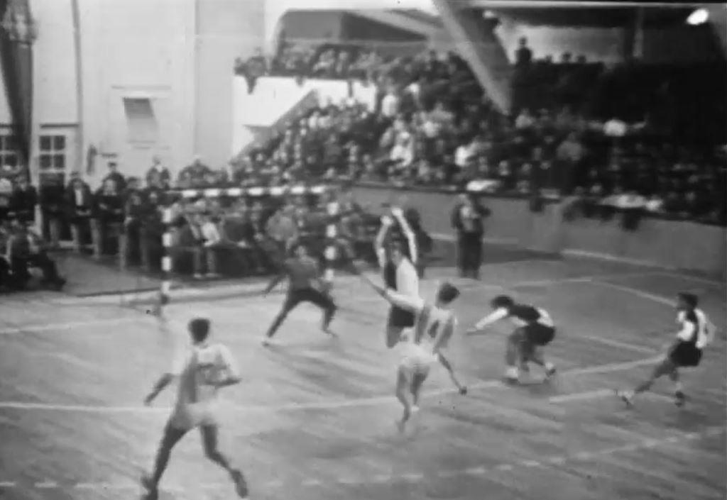 Aber woanders wurde offenbar noch länger Feldhandball gespielt und offenbar auch Meisterschaften ausgetragen. Es kann also nicht mit Schalter umlegen überall von Feld auf Halle umgestellt worden sein.