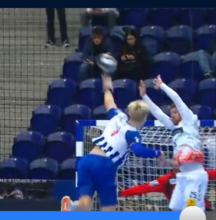 Hier die Szene beim Spiel Porto:Magdeburg, wo der Kopftreffer passiert.