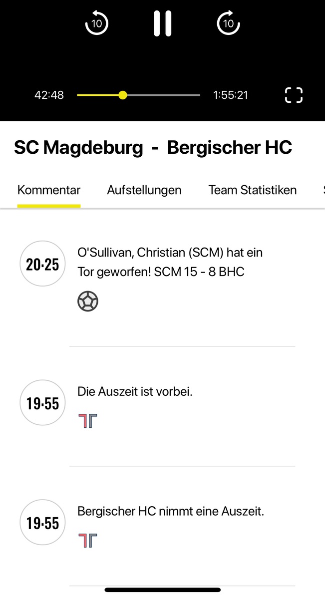 Ein ergänzender Wunsch zu den Statistiken: Es wäre klasse, wenn man beispielsweise alle Tore eines Spielers oder alle Paraden eines Torhüters hintereinander abspielen könnte.