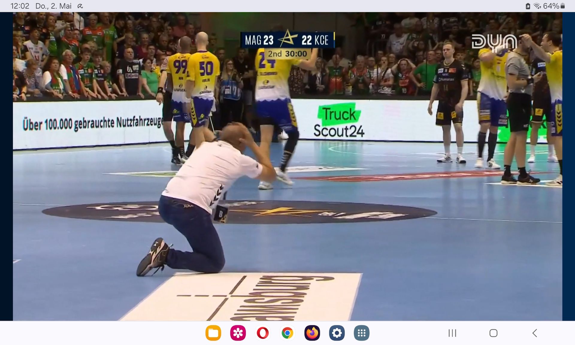 Kielce hatte da auch einen 8. Mann auf dem Spielfeld. Talant mitten in seiner Spielhälfte auf der Platte, ebenfalls auf den Knien.