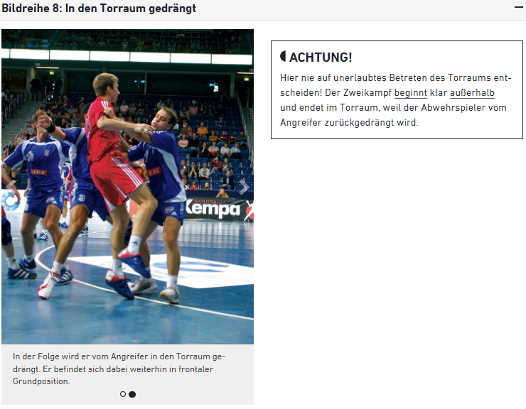 Hier einfach nochmal die ganze Szene von den letzten 40 Sekunden des Spiels Slowenien gegen Dänemark. Und zu der Frage, wann es ein Betreten des Torraums nach Regel 6:2 c) ist hier mal der Auszug aus dem SR-Portal. Und ich habe mal dazu noch das Beispiel beigefügt, was zu beachten ist, wenn der Abwehrspiele bei der Abwehr in den Torraum gedrängt wird.