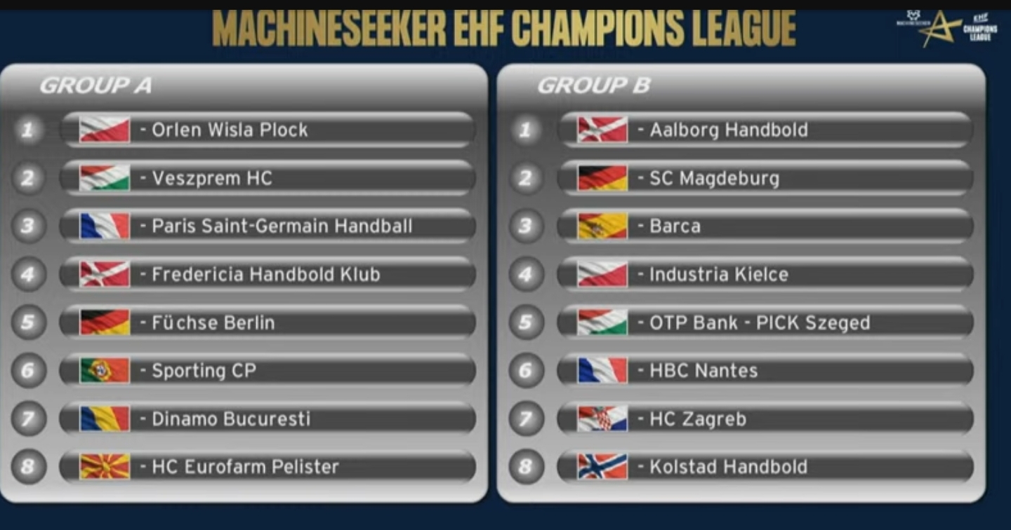 2. Gruppe: Barca, Veszprém, Aalborg, Berlin, Kielce, Nantes, Zagreb, Bitola