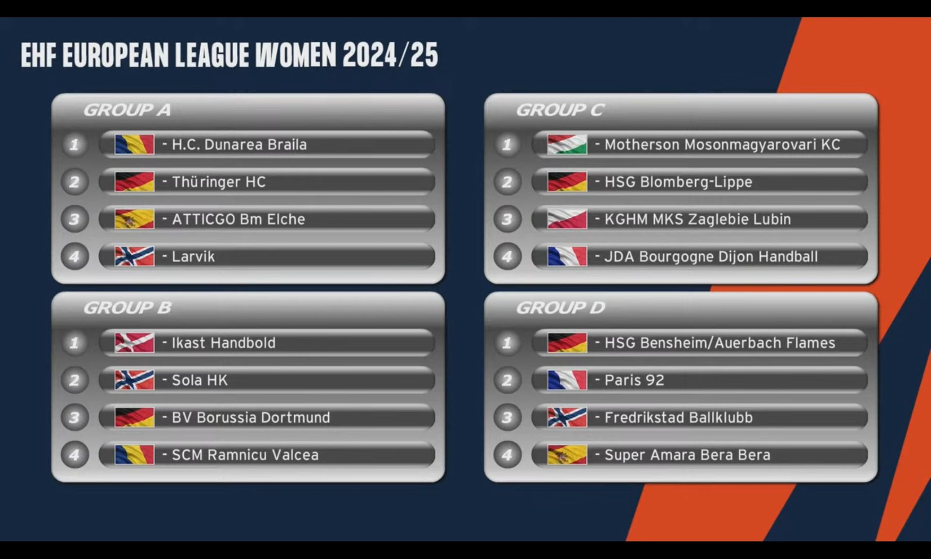 Ich würde mir mehr Gedanken um das VF machen. A trifft auf B. Und die Top6 dürfte in den Gruppen A und B sein. Auf der anderen Seite haben Blomberg und Bensheim realistische F4-Chancen. MKC hat den THC am Ende der Vorbereitung klar geschlagen. Aber 6 von 9 Spiele verloren. Paris hat Nocandy und Lassource verloren. Kaum jemanden geholt. Dijon hat ein paar U20-Weltmeister und 3-4 erfahrene Spielerinnen. Der Rest sind bessere Amateurklubs.