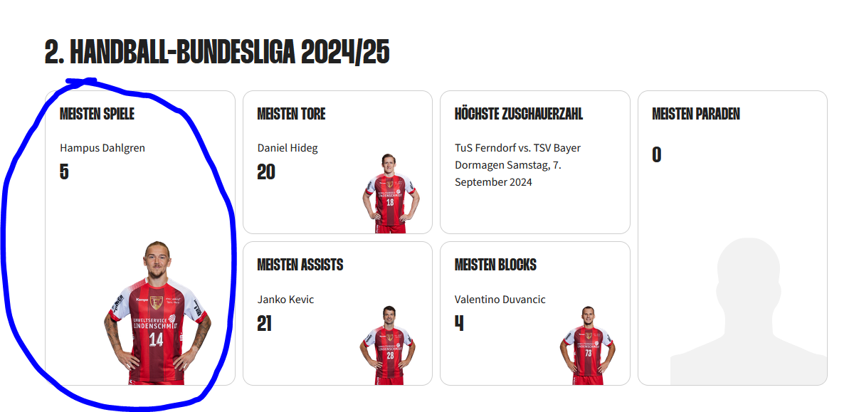 3. Auf sämtlichen Spielerseiten fehlt die komplette Karriere-Statistik. Das war immer einer der großen Mehrwerte der HBL-Homepage. Man kann zwar die einzelnen Saisons abrufen, aber nicht die Gesamt-Statistik. Warum? Das ist ein erheblicher Rückschritt. Ich hoffe wirklich sehr, dass diese Datensätze nicht verlorengegangen sind....