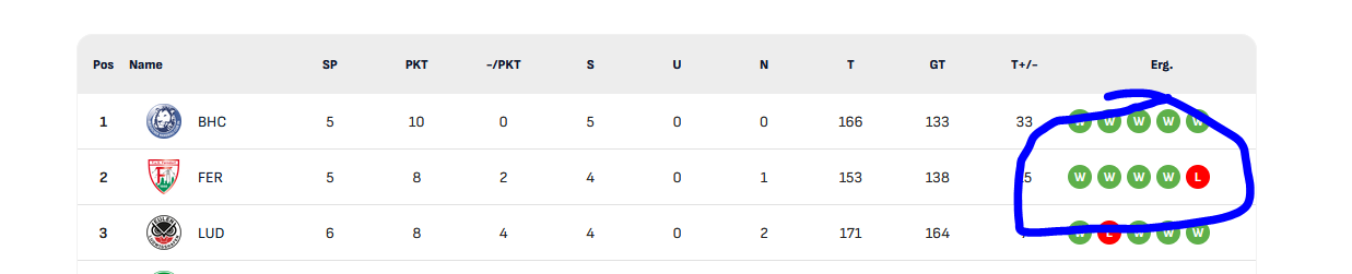 6. Die Form-Serie in der Tabelle stimmt ebenfalls nicht: Wir haben Gewonnen - Verloren - Gewonnen - Gewonnen - Gewonnen. Hier ist es falsch gelistet als erst eine Niederlage und dann 4 Siege.