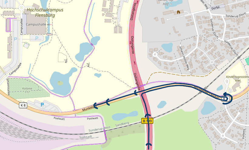 Obacht bei der Anfahrt: Die B199 (Osttangente) wird gerade saniert und der Verkehr einspurig über die Gegenfahrbahn geführt. Wenn man von Süden (B200/A7) kommt darf man nicht links zur Campushalle abbiegen!