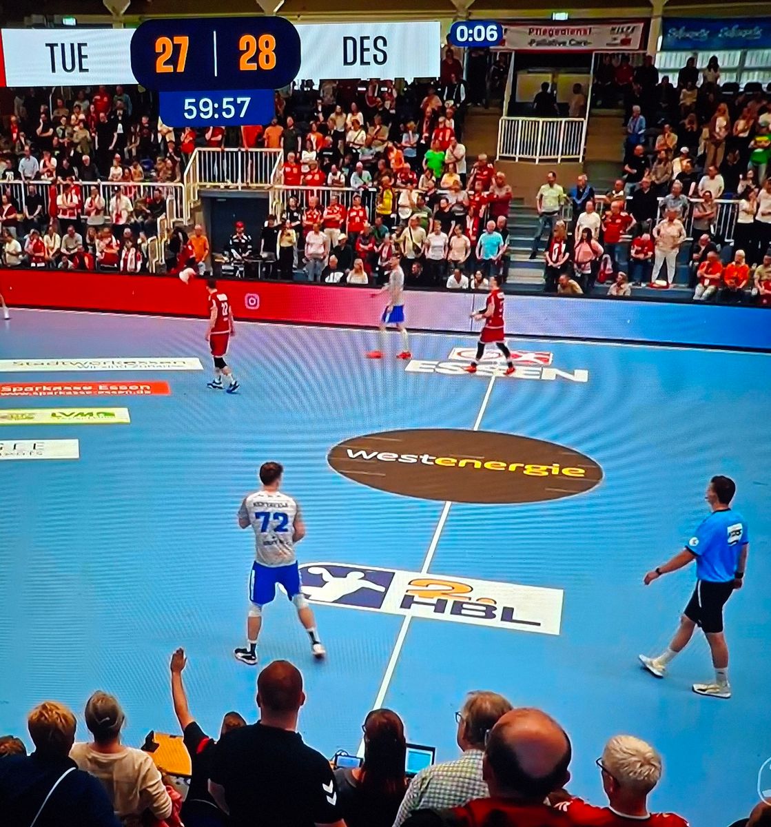 In diesem Zusammenhang wäre die Frage interessant, wer TuSEM Essen den wertvollen Hinweis gab, im Spielprotokoll einen Einspruch anzukündigen. ( DynAndy & Anett) In der DYN-Aufzeichnung vom Spiel sieht man, dass nach Spielende alles harmonisch war. Keine Beschwerden von der TuSEM-Bank, sondern nur allseitiges Händeschütteln. Vor dem Unterzeichnen des Spielprotokolls muss also noch irgendwer den Fehler bemerkt haben.
