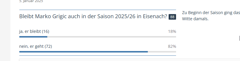 ...das Einzige was nicht so richtig passt, sind die Aussagen zum vorzeitigen Wechsel von Marko selbst in einem TV-Interview ("...ich prophezeie mal, dass da das letzte Wort noch nicht gesprochen ist") und die "eines Verwandten" (Marko wird ohne Ablöse Eisenach bereits im Sommer verlassen), alle bereits vor Wochen.