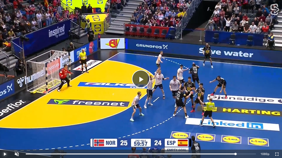 Warum gab es am Ende keinen 7m für Spanien? Der Norweger behindert die Freiwurfausführung 5 Sekunden vor dem Ende. Sie gucken sich das nochmal an und geben auch keine 2min fürs Nichteinhalten.