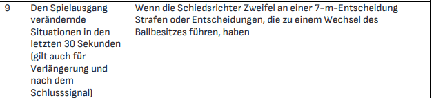 Dass es diesen 7-Meter nur mit Videobeweis gibt (der da nur in den letzten 30 Sekunden angewendet wird), ist klar.