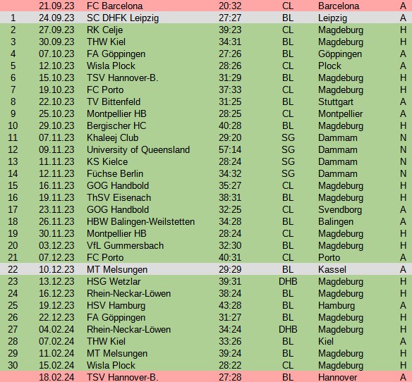Bin gerade wieder zu Hause gelandet und muss sagen, das Leipzig die mit Abstand schwächste Mannschaft war die ich diese Saison gegen den SCM habe spielen sehen (ausgenommen das Turnier in Ägypten).