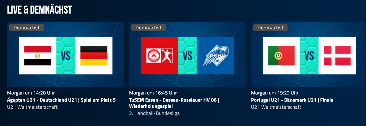 Werden inzwischen bei DYN in der Vorschau für heute angezeigt. Das Spiel NOR-GER (18.30 Uhr) + beide Halbfinalspiele (21.00 Uhr).