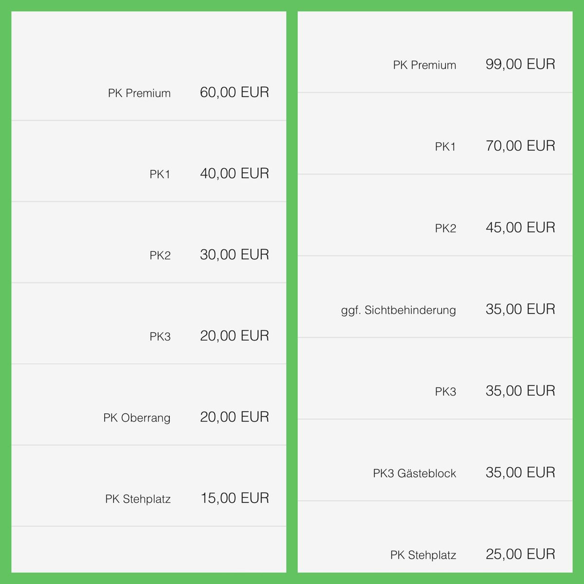Gegen den SCM PK Premium 99€, was beim ersten Heimspiel diese Saison gegen den BHC noch 60€ waren.